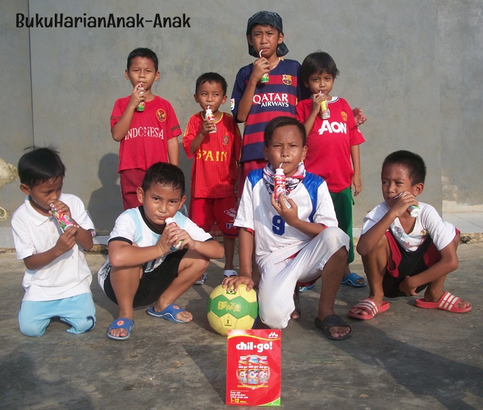 1. semangat mereka loh, ketika diajak bermain bola dan setelah itu minum susu Chil Go