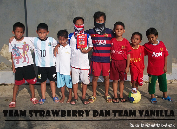 Tangerang-23 Februari 2015 berlangsung pertandingan sepak bola anatara team Morinaga Chil-Go Strawberry dengan team Morinaga Chil-Go Vanila. Cuaca sangat cerah pada sore hari yang telah dijadwalkan untuk bertanding sepak bola. Sebelum acara dimulai, saya mempersiapkan segala-sesuatunya. Memastikan teman-teman Faiz yang akan bertanding telah siap mengenakan kostum yang telah disepakati. Menyiapkan susu cair pertumbuhan Morinaga Chil-Go untuk dinikmati Faiz dan teman-teman setelah acara bertanding sepak bola.
